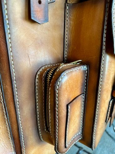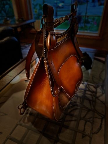 Order yours for $550 CAD or $425 USD plus shipping. Dye color can be customized to your preferences. Shown is Saddle Tan and chocolate trim with cream thread.