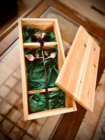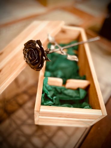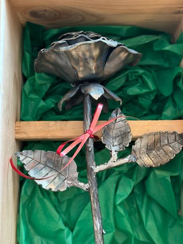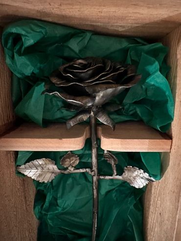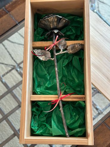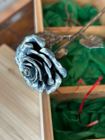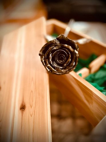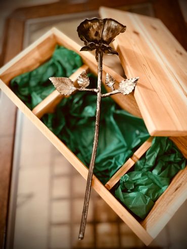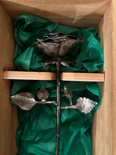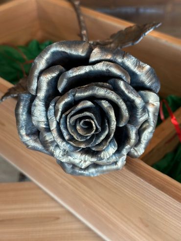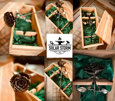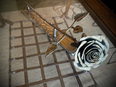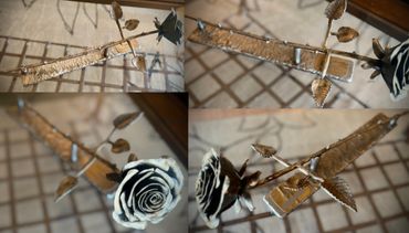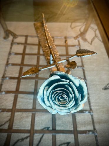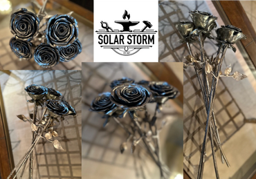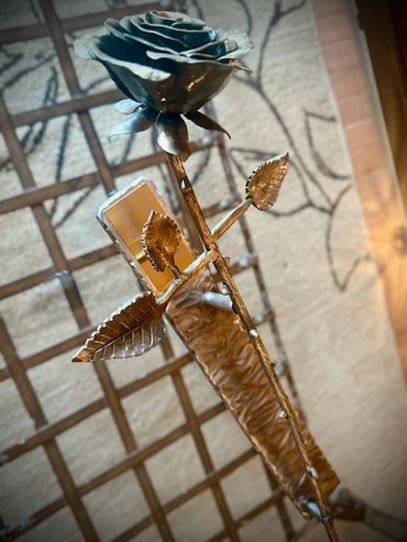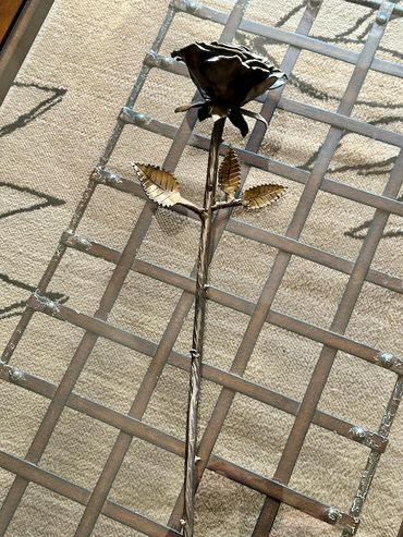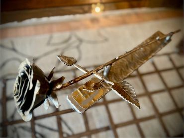 16" rose that will never wilt. These make great gifts for graduations, weddings, anniversaries, or birthdays. Made from steel and brushed with hot brass to bring out the highlights. The perfect gift. $325 CAD. Email or phone to order this rose. You can also read all about how these roses were made on the articles page: https://www.solarstorm.ca/articles